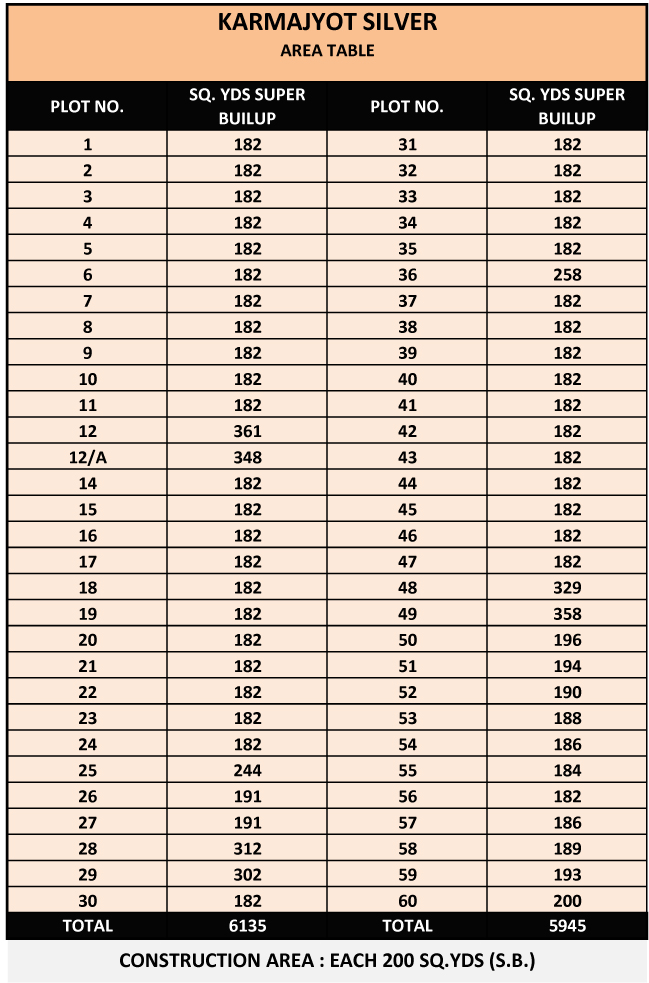 - Plot Rate Per Sq.Yard Rs. 15,000/- (As Per Plot Area Table)